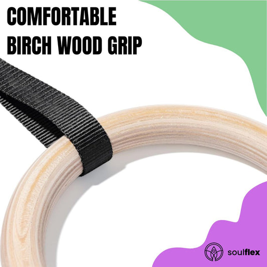 Soulflex Wooden Gymnastics Rings | Adjustable Nylon Straps
